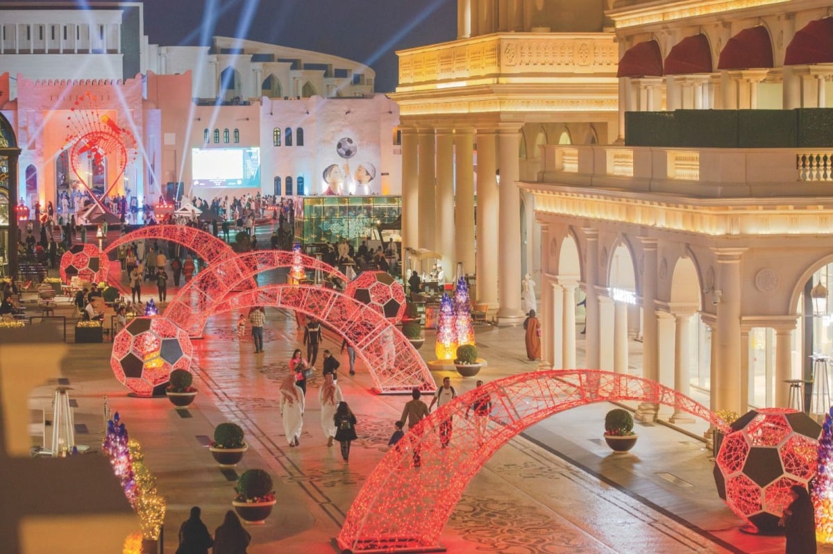 تحول شارعه إلى مهرجان لكرة القدم، وزيَّن بأقواس ساحرة من الكُرات المضاءة بالأحمر