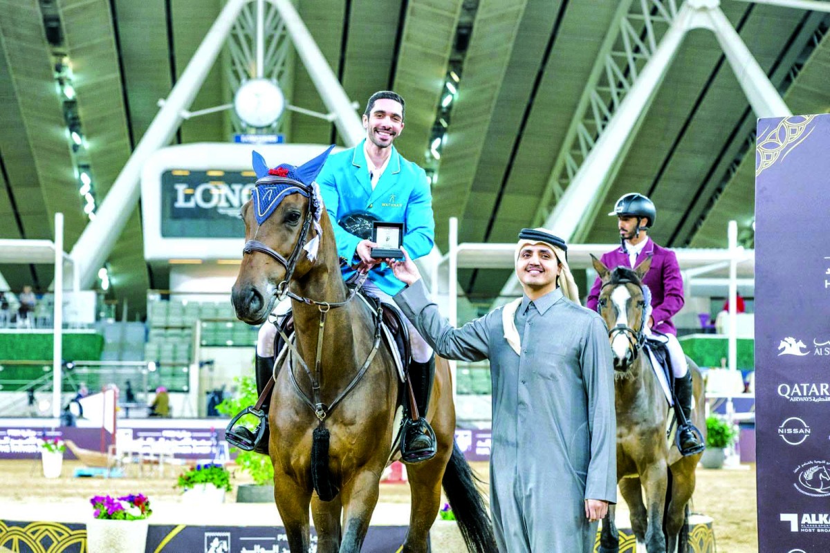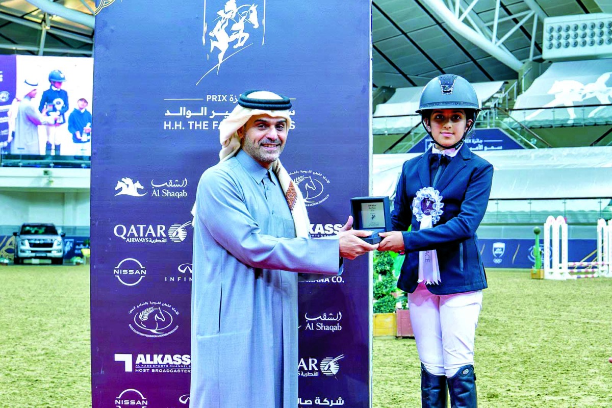 توج سعادة الشيخ ثاني بن حمد بن خليفة آل ثاني، رئيس مجلس إدارة صندوق قطر للتنمية الفائزين بالمراكز الخمسة الأولى في شوط الخمس نجوم على ارتفاع 140 سم، ضمن جائزة سمو الأمير الوالد والتي انطلقت ثالث جولاتها مساء أمس في ميدان لونجين بالشقب، بمشاركة كبيرة لنخبة من أفضل الفرسان المصنفين في العالم، وبجوائز تتجاوز قيمتها 3.3 مليون يورو للبطولة.