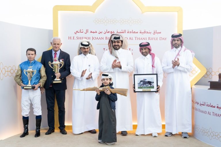 الشيخ جوعان بن حمد يتوج الفائزين بالمراكز الأولى في سباق الخيل على جوائز وبندقية سعادته