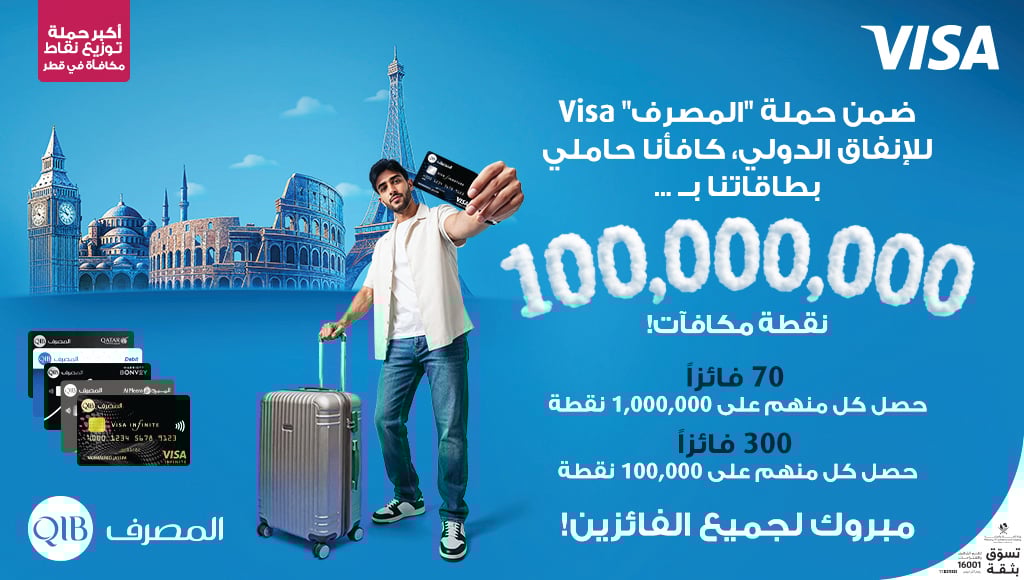 أعلن مصرف قطر الإسلامي المصرف، رائد الصيرفة الرقمية في قطر، عن الفائزين بالجائزة الكبرى لحملة الاستخدام الدولي لبطاقات الخصم والائتمان من Visa، مختتماً بذلك موسماً ناجحاً لمكافأة العملاء على استخدام بطاقاتهم. حصل إجمالي 370 فائزاً على مجموع 100 مليون نقطة مكافآت خلال فترة الحملة، مما عزز التزام المصرف بتقديم مكافآت قيّمة وتجارب دفع استثنائية لحاملي بطاقات Visa. مكافآت الحملة 70 فائزاً بالجائزة الكبرة 1,000,000 نقطة مكافآت (أفيوس، وMarriott Bonvoy، ومكافآت ميرة وأبشر) لكل منهم حسب نوع بطاقتهم.