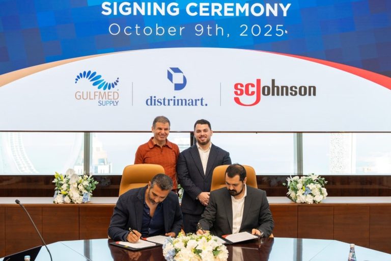 تم توقيع العقد في العاصمة القطرية الدوحة، بين كل من محمد الخياط – رئيس مجلس إدارة شركة ديشلي القابضة، ومحمد المغازي، مدير منطقة شمال إفريقيا وبلاد الشام لشركة إس سي جونسون، بحضور محمد شويكي، الرئيس التنفيذي لشركة ديستري مارت.
