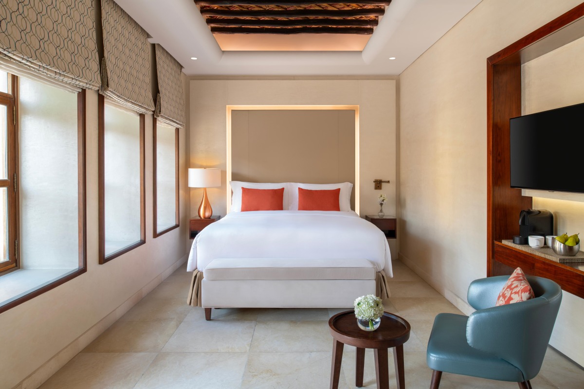 تؤدي الممرات المفتوحة والمسارات المتعرجة إلى أفنية هادئة يمكن حجز عدة غرف حولها لتشكيل مساحات خاصة للمجموعات أو الوفود. وللتمتع بخصوصية متكاملة، يمكن للعائلات أو المجموعات الخاصة الإقامة في غرف متجاورة حول المجالس المظللة، مما يجعلها مثالية للاحتفالات أو التجمعات العائلية الحميمة.