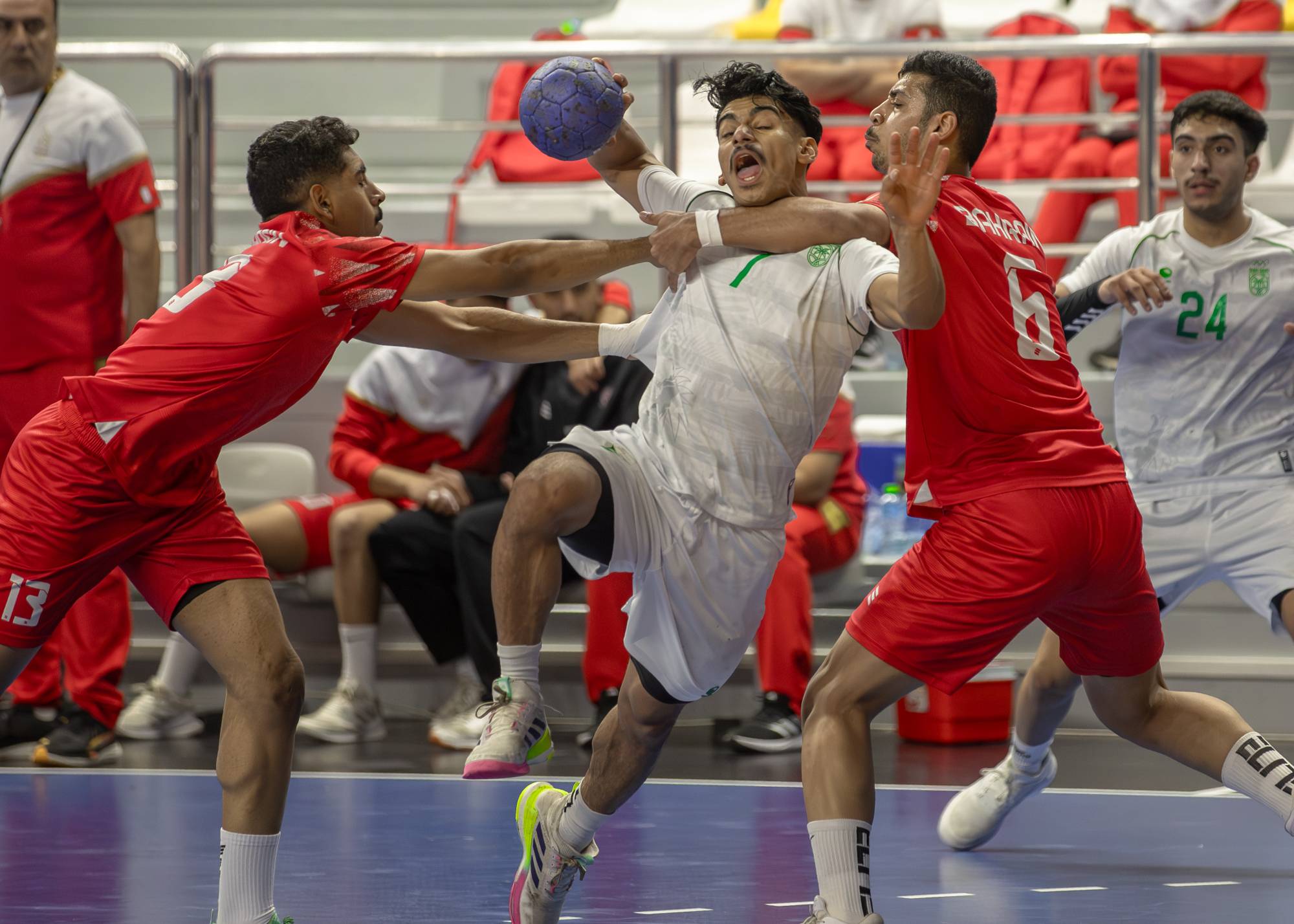 من جهته، اكتسح المنتخب السعودي لكرة اليد، صدارة المجموعة الأولى من مسابقة كرة اليد، معززاً بذلك تأهله إلى نصف نهائي المسابقة، عقب فوزه في الجولة الأخيرة لدور المجموعات على نظيره البحريني بنتيجة 33 – 27.