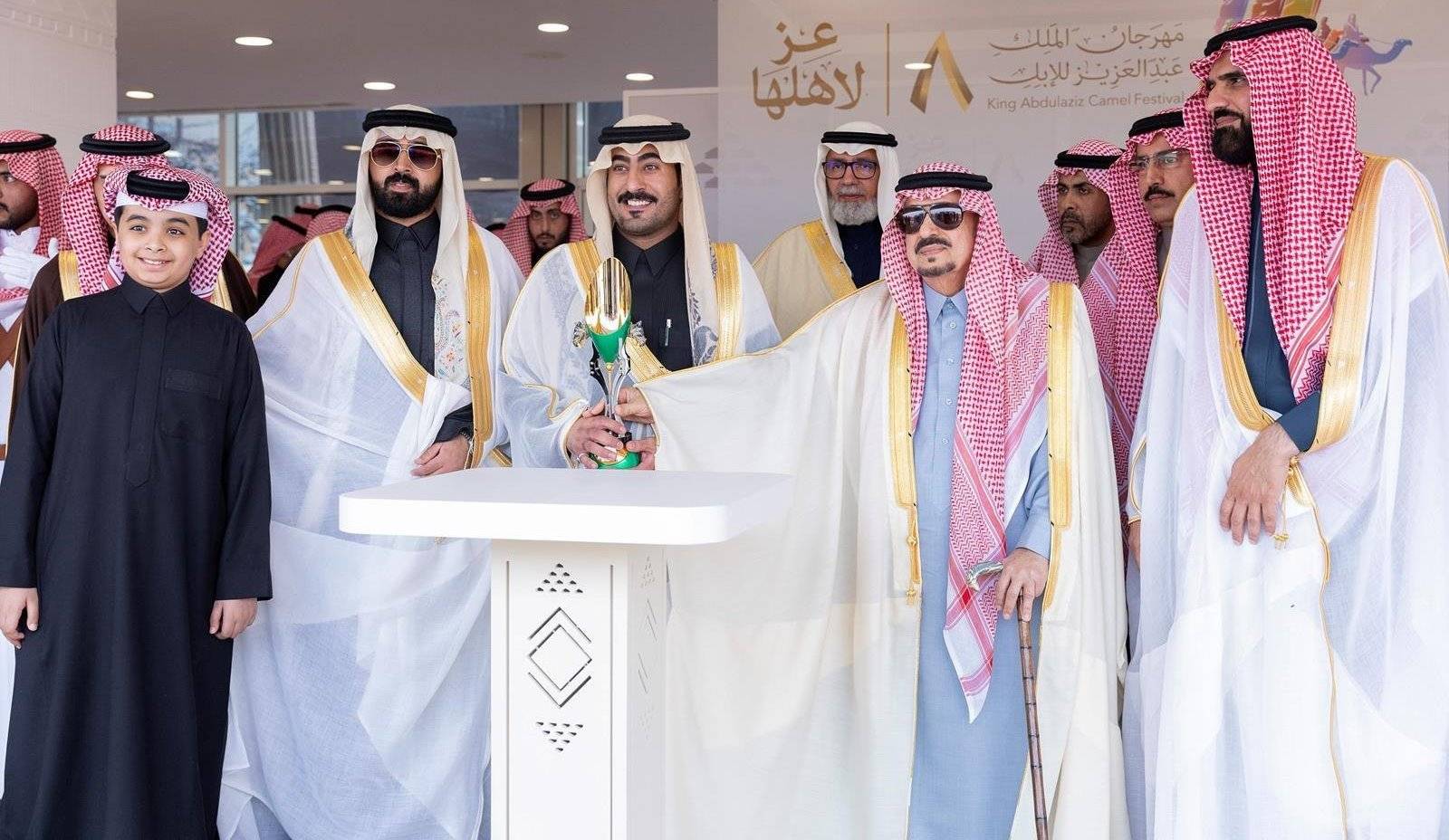 ثم تسلم ملاك الإبل الفائزة جوائز المراكز الأولى في جميع الألوان وفئات الجائزة من الأمير فيصل بن بندر.