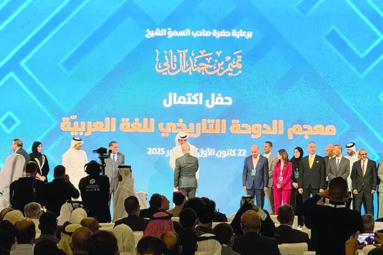 تزامناً مع اليوم العالمي للغة العربية، أُقيم أمس في قاعة كتارا بمدينة لوسيل القطرية حفل اكتمال معجم الدوحة التاريخي للغة العربية، برعاية أمير قطر الشيخ تميم بن حمد آل ثاني، وتنظيم المركز العربيّ للأبحاث ودراسة السياسات.