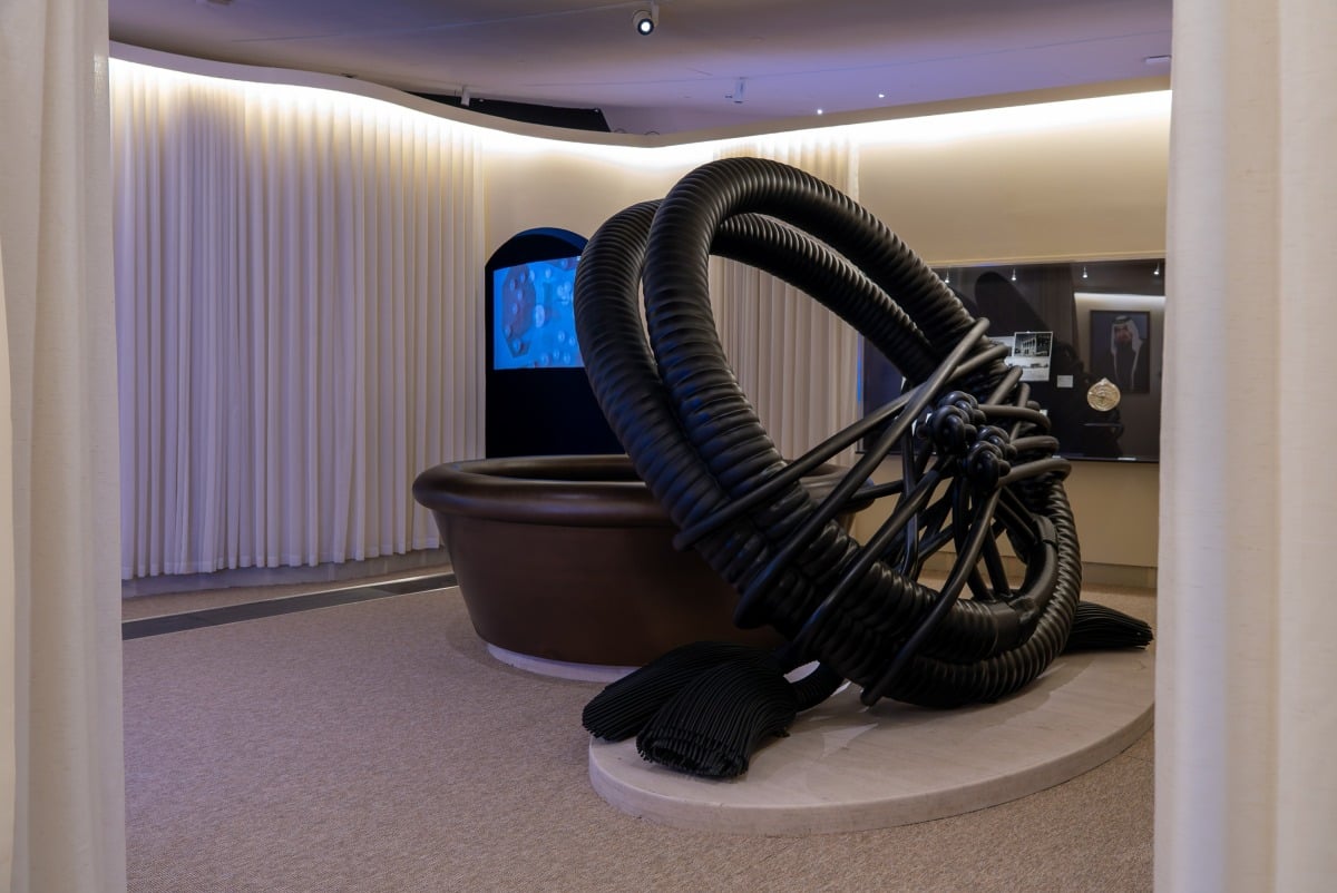 ويجسد العمل الفني التركيبي للفنان الشيخ خليفة آل ثاني الهوية الثقافية المتطورة لدولة قطر، ويعكس أن الماضي هو الأساس، الذي يُبنى عليه المستقبل، وهو عمل يُبث عبر شاشات تلفزيونية تصاحبه تقنيات لتحريك الرسومات بالذكاء الاصطناعي لإعادة تحريك هندسة القصر القديم المعمارية وتاريخه.