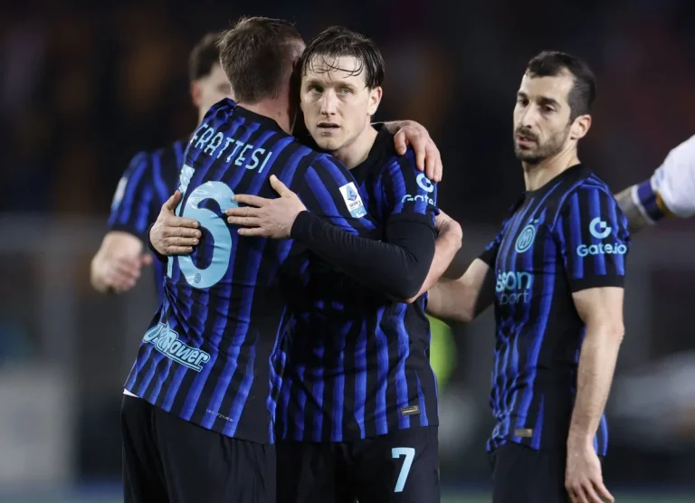 وانتظر إنتر الدقائق الـ15 الأخيرة من المباراة لحسم نتيجتها في صالحه بهدفين للاعب وسطه الدولي الأرميني المخضرم هنريك مخيتاريان، البالغ 37 عاماً، بتسديدة نصف طائرة وسط منطقة الجزاء (75)، قبل أن يضيف المدافع السويسري مانويل أكانجي الهدف الثاني برأسية، إثر ركنية نفّذها فيديريكو ديماركو قبل النهاية بثماني دقائق (82).