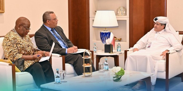 جاء اللقاء على هامش مؤتمر /الإيكاو/ للتسهيلات، المنعقد حاليا في مدينة الدوحة، حيث اجتمع السيد محمد بن فالح الهاجري المكلف بتسيير أعمال الهيئة العامة للطيران المدني، بكل من السيد ديفيد بريندر غاست مدير البرامج القطاعية في المجموعة، والسيدة بولين ييروود نائبة مدير برنامج النقل في الكاريكوم.