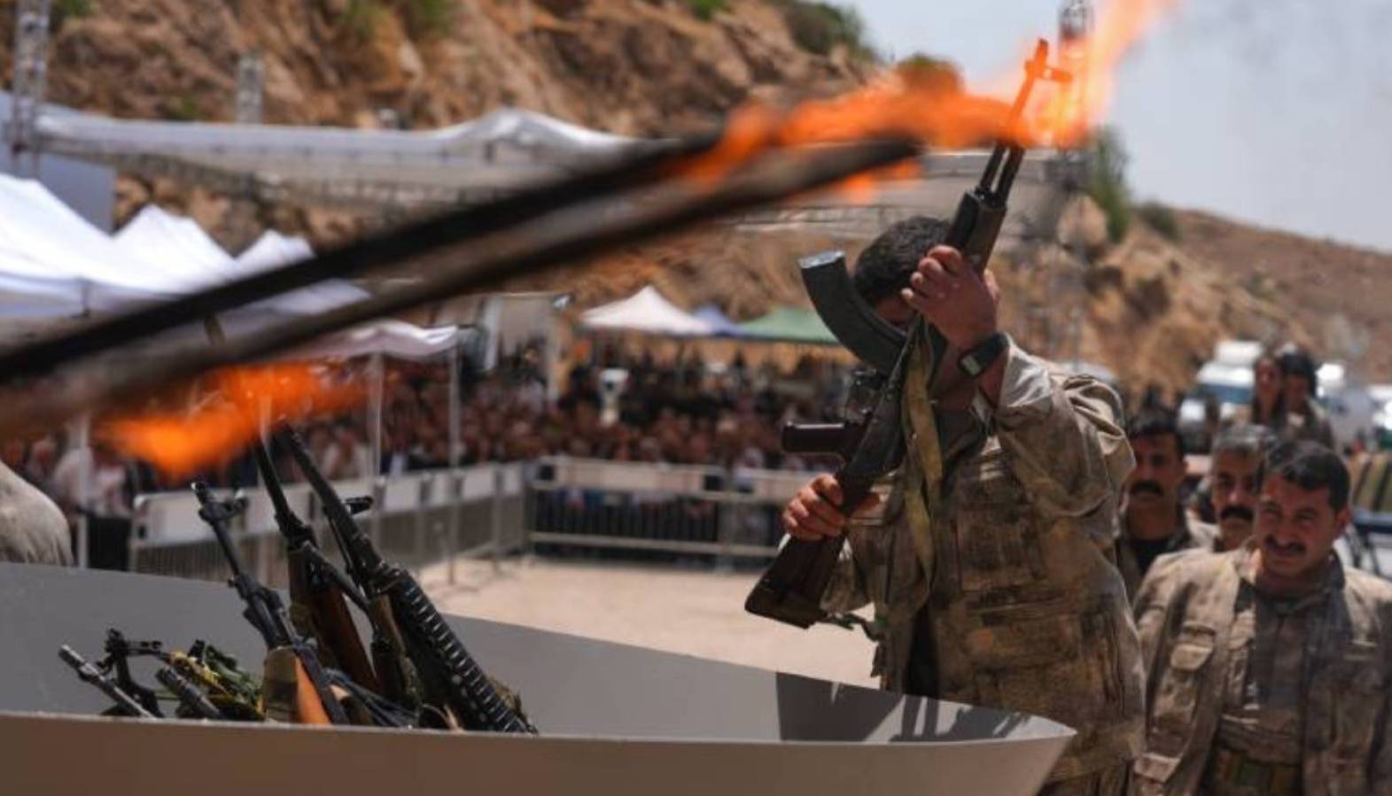 ثم قام 30 من عناصره بإحراق أسلحتهم في مراسم رمزية أُقيمت عند سفح جبل قنديل في السليمانية شمال العراق. وأعقب ذلك، إعلان الحزب، في مؤتمر صحافي عُقد في السليمانية أيضاً، سحب جميع مسلحيه من الأراضي التركية إلى مناطق الدفاع (ميديا) في شمال العراق.