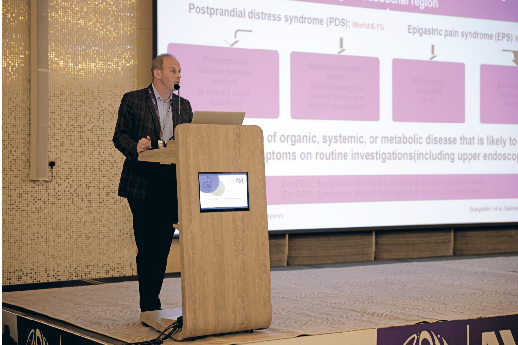 افتتح الدكتور دارِن برِنر من Northwestern Medicine الجلسات العلمية بتقديم عرضين محوريين حول العسر الهضمي الوظيفي ومتلازمة القولون العصبي، وهما من أكثر الاضطرابات شيوعًا في ممارسات الجهاز الهضمي.