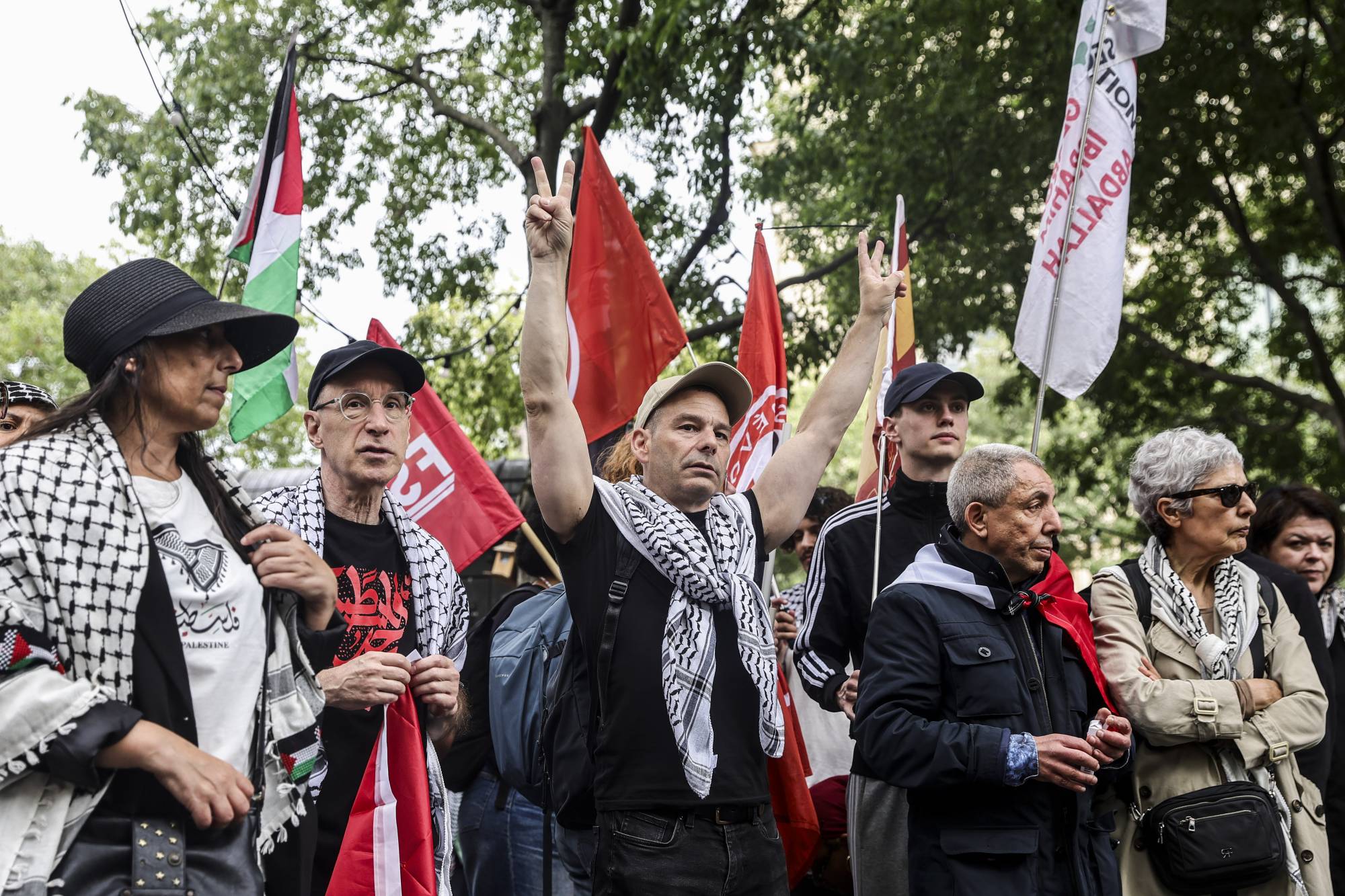 أشخاص خلال مظاهرة دعماً للسجين جورج إبراهيم عبد الله في باريس بفرنسا 16 يوليو 2025 (إ.ب.أ)