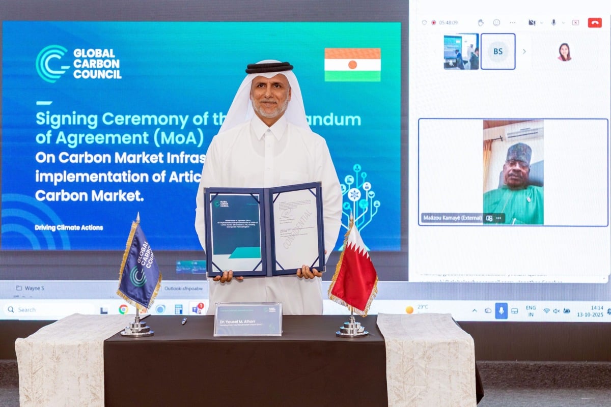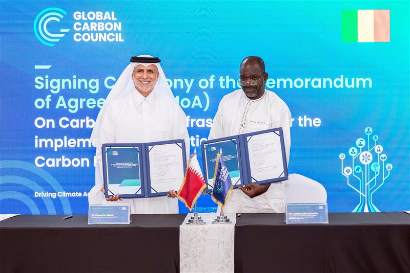 وقّع المجلس العالمي للبصمة الكربونية الذي يتخذ من الدوحة مقرا له ، اتفاقيات استراتيجية مع مؤسسات وطنية معنية بالمناخ في كل من مالي، وموريتانيا، والنيجر، بهدف تعزيز البنية التحتية الرقمية لأسواق الكربون، ودعم جاهزية هذه الدول لتنفيذ المادة السادسة من اتفاق باريس.