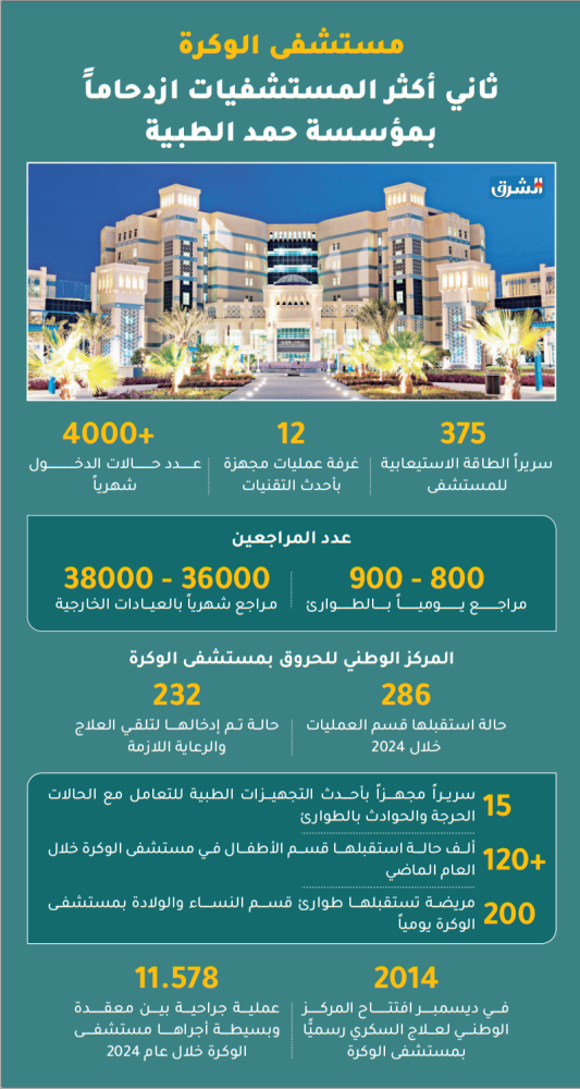– 4500 حالة إدخال يشهدها مستشفى الوكرة شهرياً