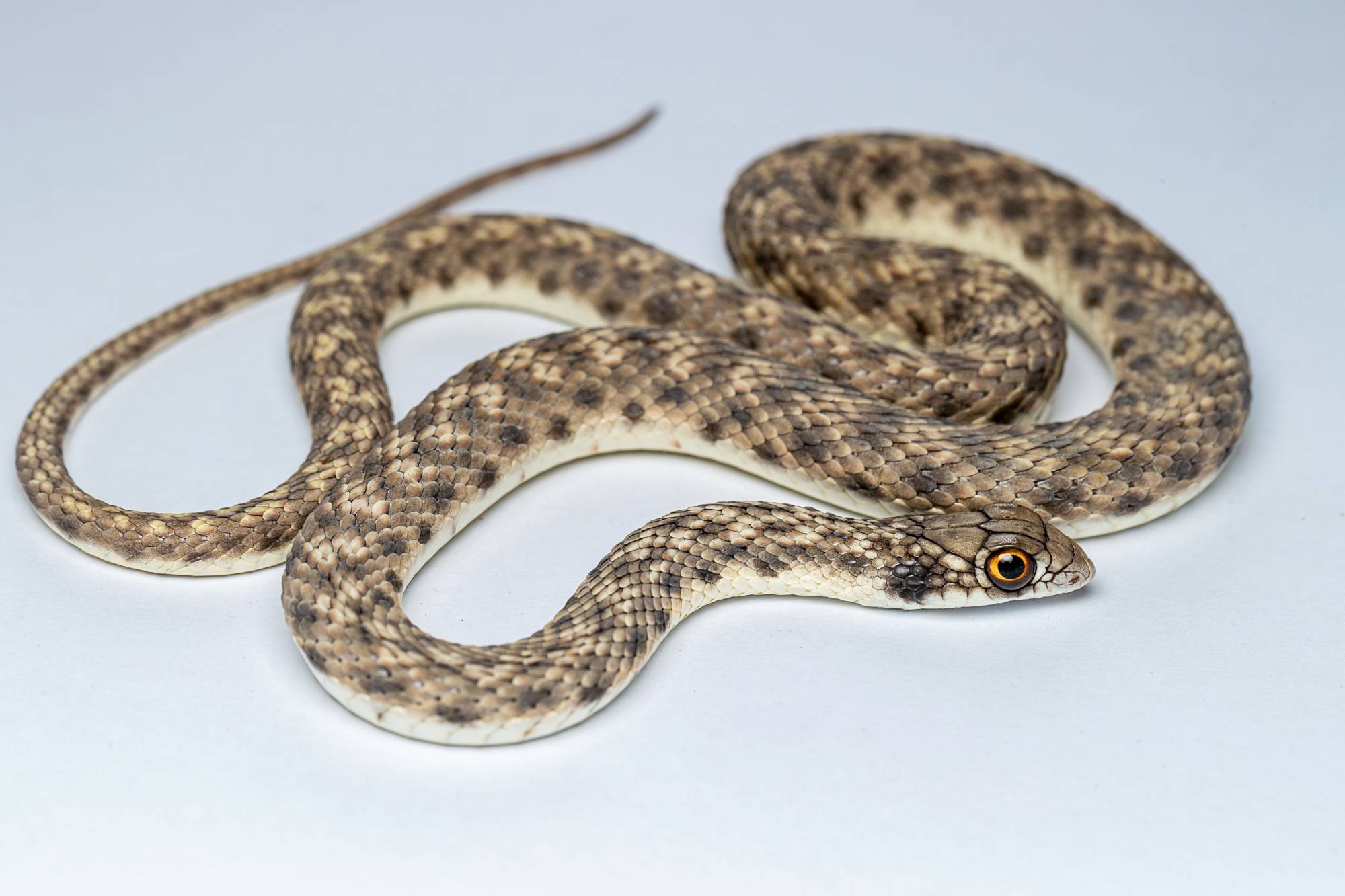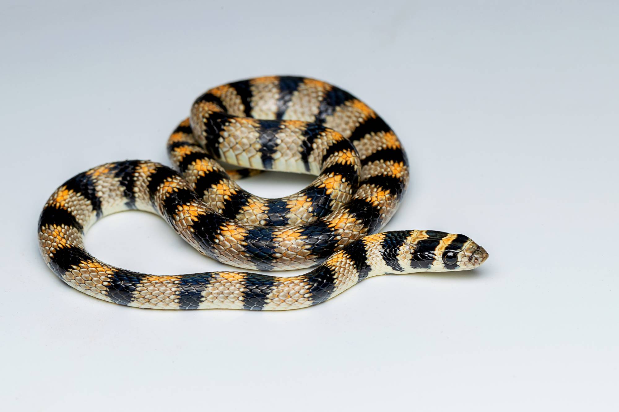 يعد هذا الثعبان، ذو الجلد المائل إلى اللونين الأصفر والبرتقالي المخطط بالشرائح السوداء، من أجمل الثعابين غير السامة والسريعة المنتشرة في عُمان واليمن والسعودية. وبسبب روعة وجمال جلده الطبيعي لقبه السكان المحليون بـ«الثعبان الأنيق». يقتات هذا الثعبان، ذو الأعداد القليلة في البرية، على السحالي وصغار القوارض التي يقتنصها خصوصا خلال الليل. (تصوير: خالد الحضرمي)