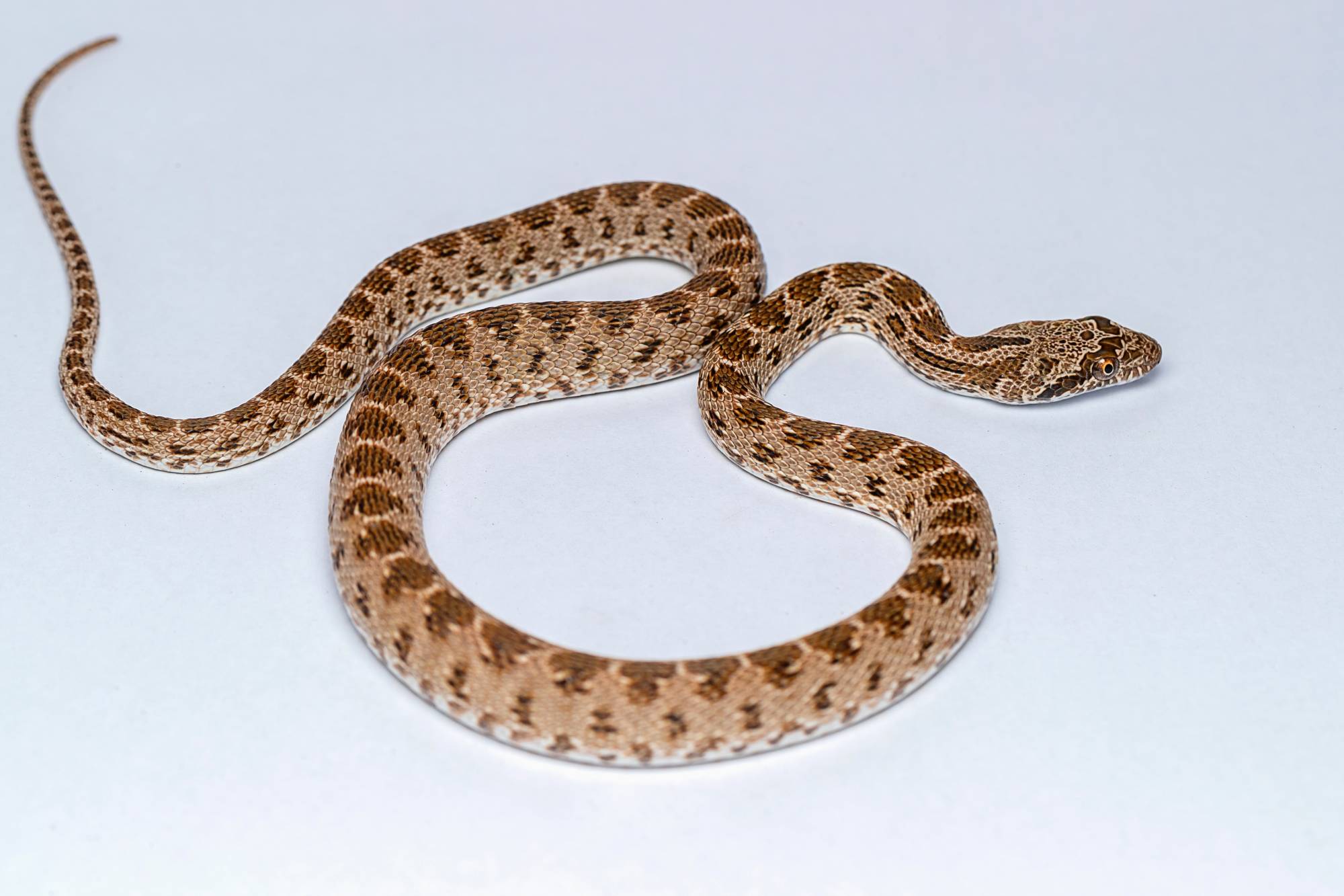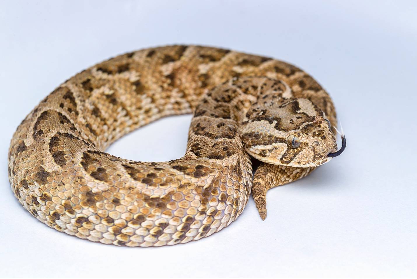 لدى استشعارها الخطر، تصدر «الأفعى المتوجه ورقية الأنف»، غير السامة، صوت فحيح يخيف مفترساتها ما يمنحها الوقت اللازم للفرار والهرب. تقتات هذه الأفعى على القوارض والحشرات. (تصوير: خالد الحضرمي)