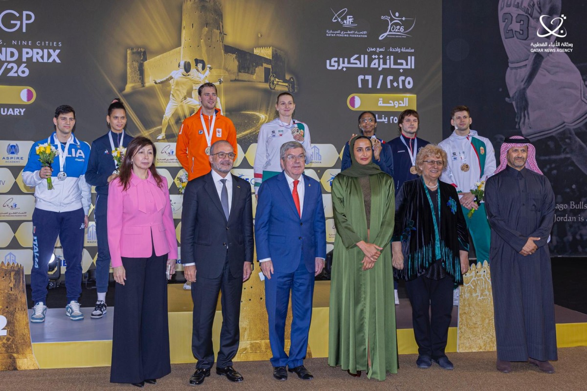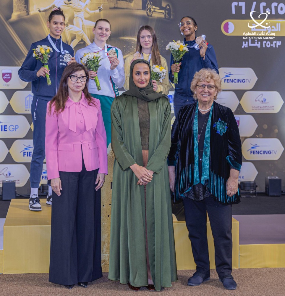 توجت سعادة الشيخة هند بنت حمد آل ثاني، نائب رئيس مجلس إدارة مؤسسة قطر للتربية والعلوم وتنمية المجتمع، اللاعبة الهنغارية إيستر موهاري بالميدالية الذهبية لفئة السيدات في ختام بطولة الجائزة الكبرى للمبارزة /الدوحة 2026/ التي نظمها الاتحاد القطري للمبارزة بإشراف الاتحاد الدولي للعبة، بنجاح كبير داخل صالات أسباير طيلة 3 أيام، بمشاركة 433 لاعبا ولاعبة، بواقع 254 لاعبا و179 لاعبة يمثلون 53 دولة من بينها 8 دول عربية وهي: قطر، والسعودية، ومصر، والعراق، ولبنان، والكويت، وتونس، والإمارات.