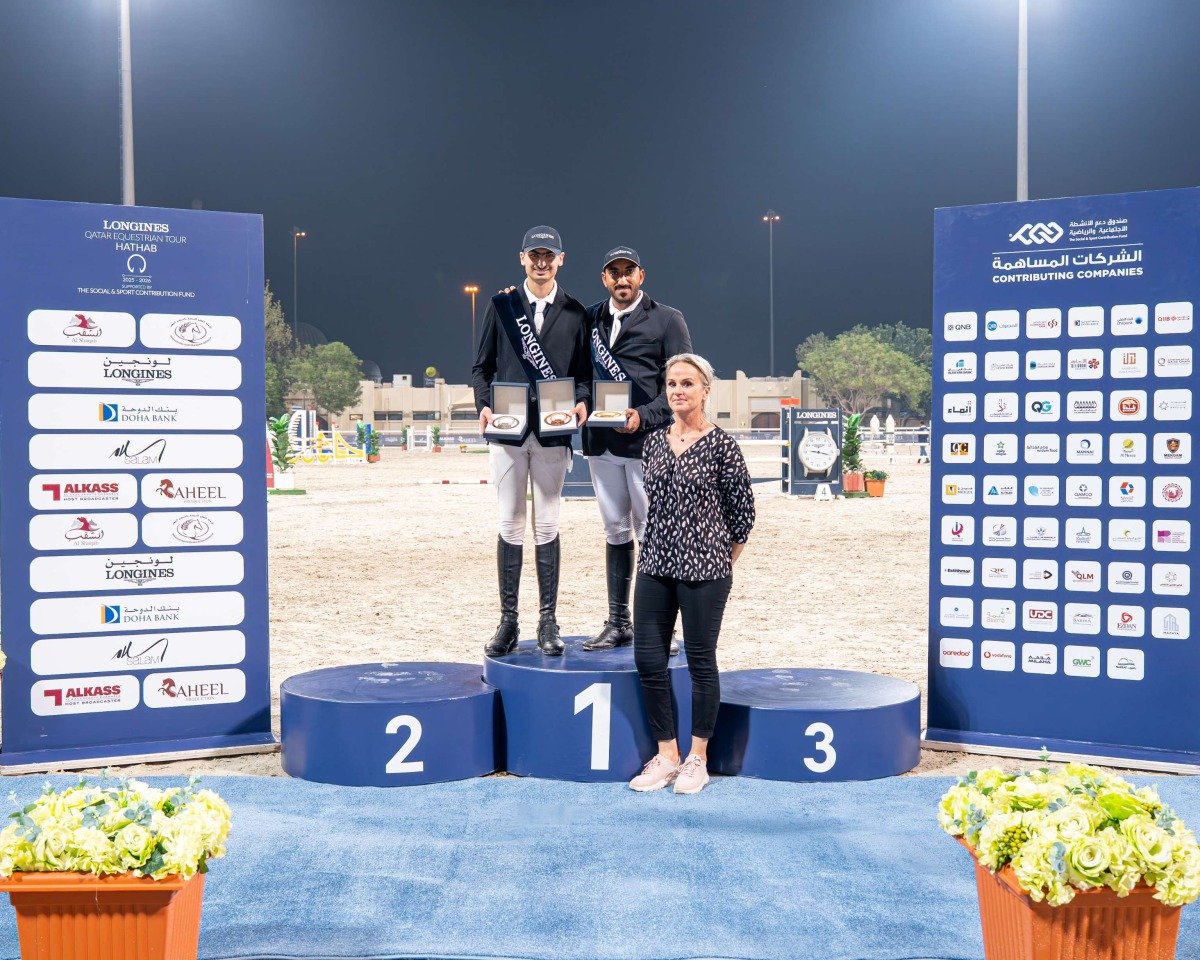 وتوج الفارس علي عمر الأنصاري بلقب جولة الهواة على ارتفاع 100 سم، بعد أن حقق زمنا قدره 26.66 ثانية على الجواد /نيكيتا/، ثم في المركز الثاني الفارسة مريم عبد الكريم بزمن قدره 27.62 ثانية على الجواد /بيونسيه/، في حين جاء في المركز الثالث الفارس خليفة بن جوعان بن حمد آل ثاني بزمن قدره 27.8 ثانية على الجواد /زيون/، وقام السيد فهد العامري، مدير المنتخب الأول للفروسية بتكريم الفائزين في جولة الهواة.