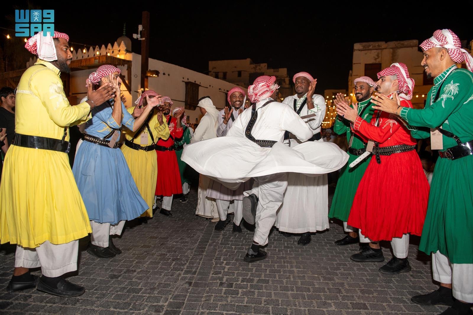 وتوزعت الفعاليات على مواقع مختلفة من “البلد” منها مدخل “باب جديد” جمع ركن القهوة السعودية التي تمثل الثقافة السعودية الأصلية، وركن منطقة الحرفيين بما يحتويه من تصاميم ومشغولات يدوية تمثل التراث السعودي القديم، ومنطقة “الألعاب الشعبية” التي استعرضت خلالها الفرق الشعبية مختلف الفنون التي تمثل مناطق المملكة المختلفة.