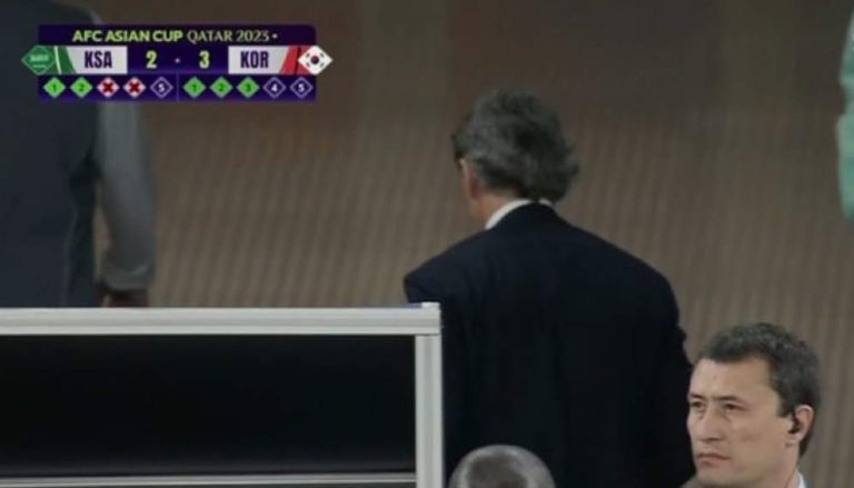 وبعد تصدي حارس كوريا للركلة الرابعة للمنتخب السعودي التي سددها عبد الرحمن غريب، وبات المنتخب الكوري على بعد ركلة واحدة من الصعود، قرر مانشيني مغادرة الملعب، وعدم الاستمرار لنهاية ركلات الترجيح.