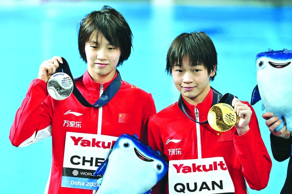 شهد اليوم الرابع من منافسات بطولة العالم للألعاب المائية الدوحة 2024 سيطرة صينية على منصات التتويج، وفازت الصينية هونغشان كوان بالميدالية الذهبية لمسابقة الغطس من السلم الثابت 10 أمتار للسيدات، وسجلت كوان 436.25 نقطة متفوقة على مواطنتها يوكسي تشن التي حصلت على الميدالية الفضية بـ 427.80 نقطة، والبريطانية أندريا سبندوليني التي نالت الميدالية البرونزية بـ 377.10 نقطة، وتعد هذه الميدالية الذهبية الثالثة للصين في منافسات الغطس حيث كان الثنائي جيانجي هوانغ وجياكي زهانغ أحرزا الميدالية الذهبية لمسابقة الغطس من السلم الثابت 10 أمتار للزوجي المختلط وفاز الثنائي زونغيوان وانغ وداوي لونغ بالميدالية الذهبية لمسابقة الغطس من السلم المتحرك 3 متر للزوجي.