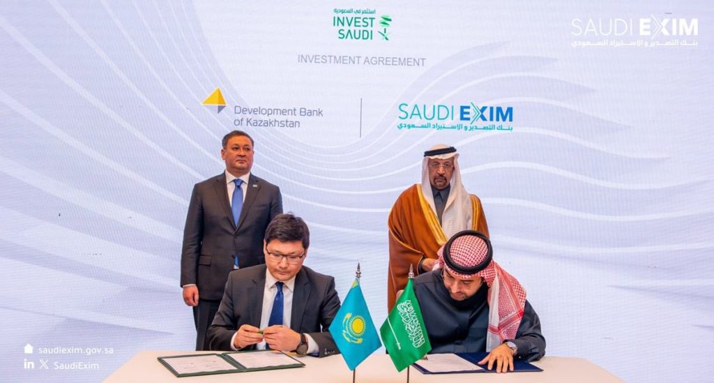 وقع بنك التصدير والاستيراد السعودي أمس مذكرة تفاهم مع بنك التنمية الكازاخستاني بغرض تحديد المبادئ الإرشادية لتطوير أوجه التعاون والعلاقات بين الطرفين من أجل تعزيز تصدير المنتجات والخدمات وزيادة التبادل التجاري بين المملكة وكازاخستان.