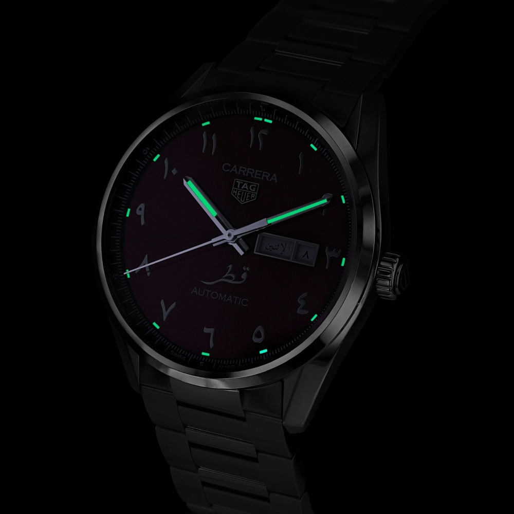 وتستمد النسخة الجديدة إلهامها من ثقافة قطر وتاريخها العريق، وتأتي تكريماً لتراث الدولة الغني بالحضارة العربية ورموزها وعناصرها الأصيلة. وتتألق ساعة كاريرا قطر محدودة الإصدار بميناء باللون العنابي المستوحى من ألوان العلم الوطني القطري، مع مؤشرات بالأرقام العربية، إلى جانب كلمة “قطر” المكتوبة باللغة العربية أعلى مؤشر الساعة 6 وسط العلبة التي يبلغ قطرها 41 ملم. وتضم الساعة ثلاثة عقارب أنيقة تعمل بحركيّة أوتوماتيكة من نوع كاليبر 5، وتتوفر بنسخة حصرية ضمن 150 قطعة محدودة الإصدار في الأسواق القطرية فقط.
