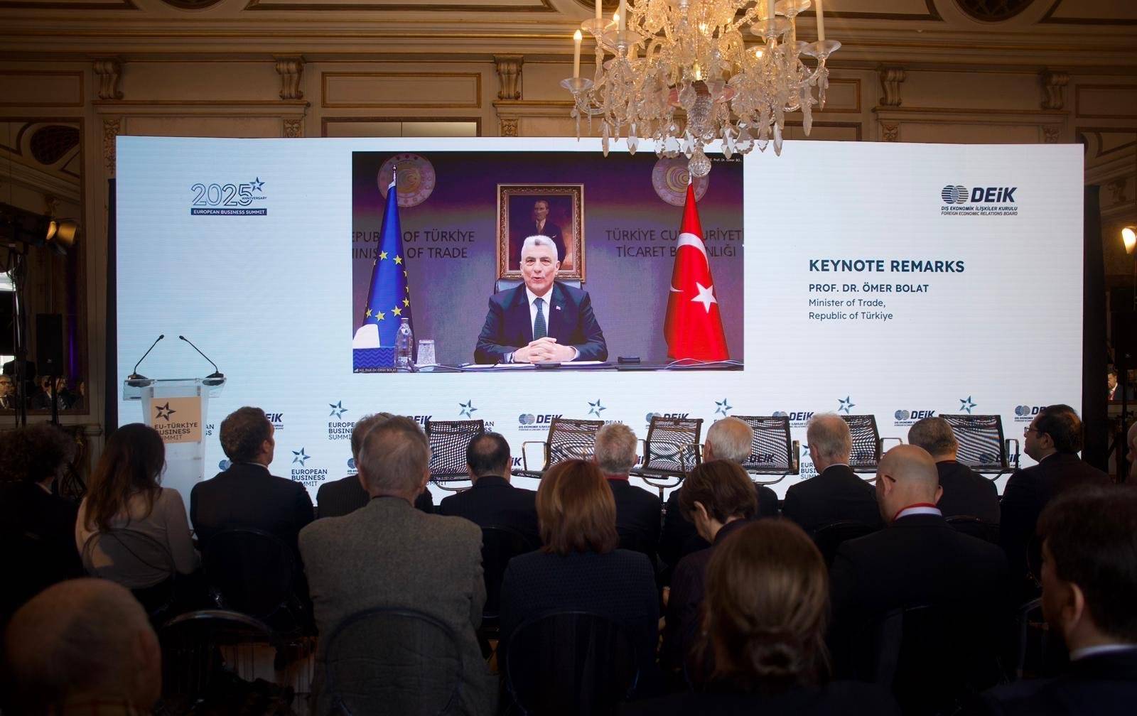 وقال وزير التجارة التركي عمر بولاط، في كلمة عبر اتصال مرئي خلال افتتاح قمة الأعمال بين الاتحاد الأوروبي وتركيا ببروكسل في 17 نوفمبر (تشرين الثاني) الماضي، إن تحديث اتفاقية الاتحاد الجمركي أصبح ضرورياً لكلا الجانبين؛ ليس فقط لتعزيز التكامل الاقتصادي، بل أيضاً لضمان بيئة تجارية عادلة، قابلة للتنبؤ، ومستقبلية.