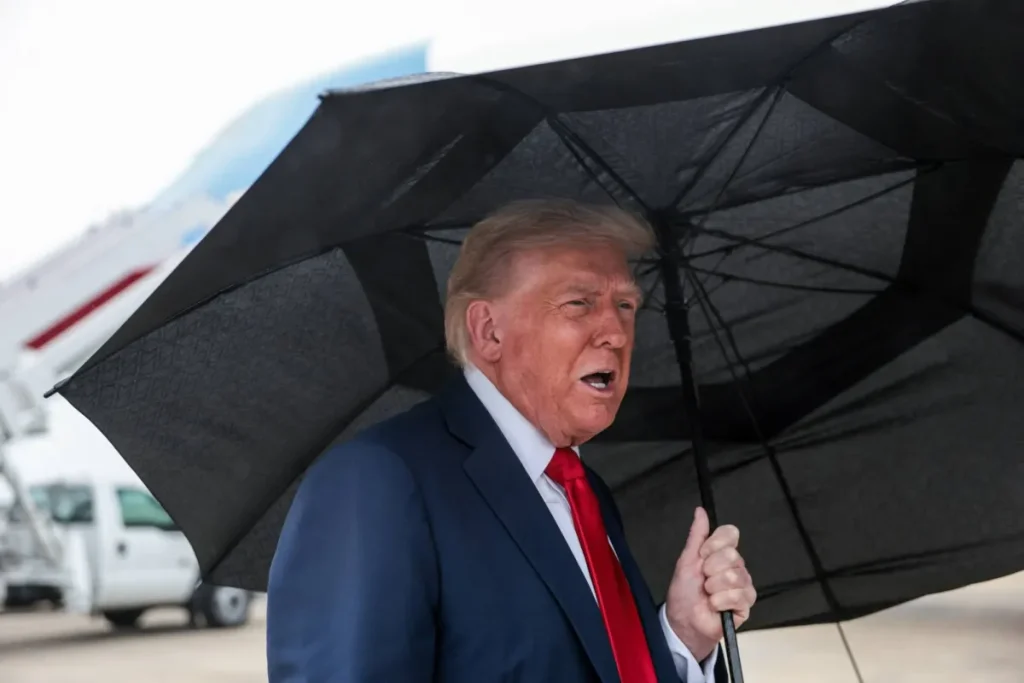 وأقلعت الطائرة الرئاسية من قاعدة آندروز قرب واشنطن في أجواء ماطرة.