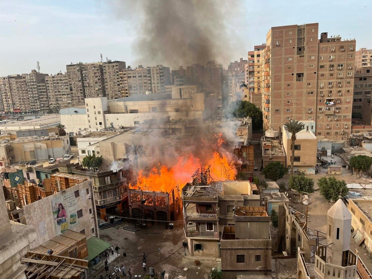 اندلع حريق ضخم ومروع، اليوم الجمعة، داخل مبنى ستديو مصر الشهير بمنطقة المريوطية في الهرم بمحافظة الجيزة المصرية.