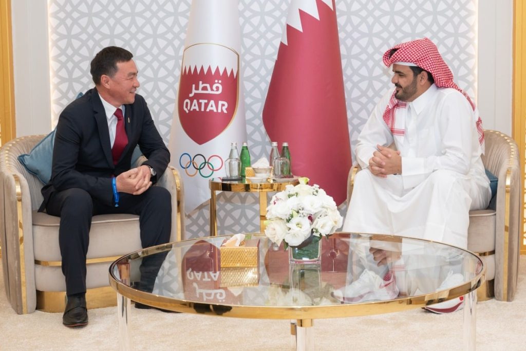 اجتمع سعادة الشيخ جوعان بن حمد آل ثاني، رئيس اللجنة الأولمبية القطرية، مع السيد صدر ماميتوف، رئيس اللجنة الأولمبية القيرغيزية، وذلك على هامش بطولة العالم للألعاب المائية /الدوحة 2024/ المقامة حاليا في الدوحة.