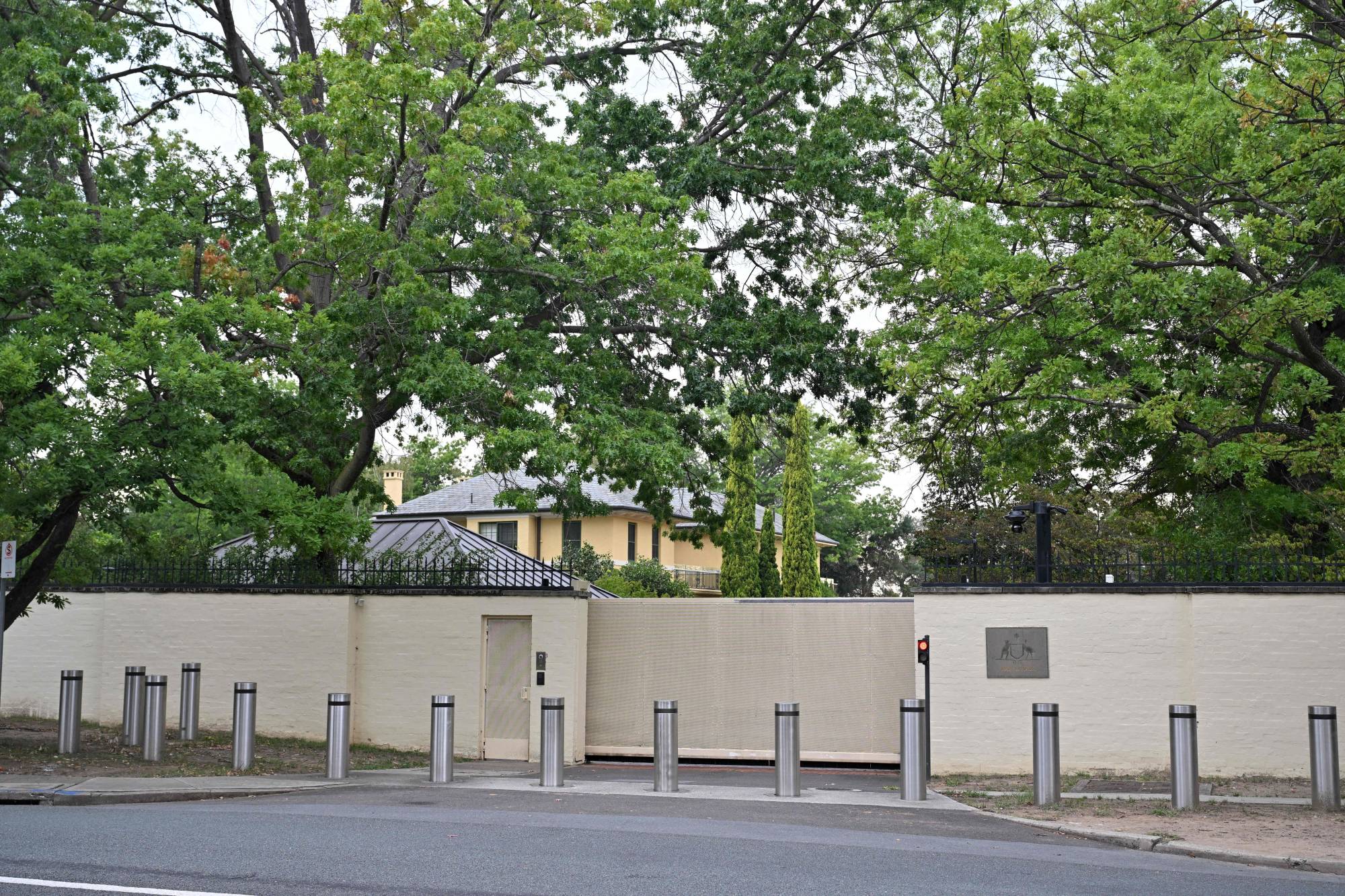أعمدة منصوبة خارج «ذا لودج» المقر الرسمي لرئيس الوزراء الأسترالي في كانبرا بأستراليا (رويترز)