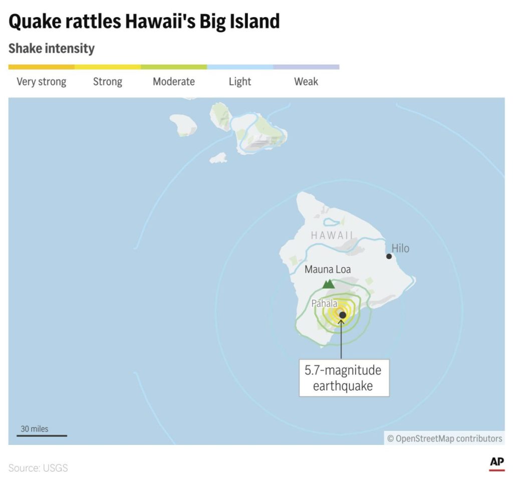 وأفاد أشخاص بأنهم شعروا بالزلزال في كل أنحاء الجزيرة الرئيسية، بحسب موقع إلكتروني يُبلّغ الناس من خلاله المرصد الأميركي بتجاربهم.