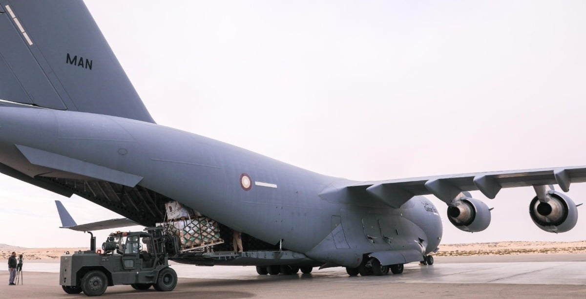 وصلت إلى مدينة العريش في جمهورية مصر العربية الشقيقة، طائرة تابعة للقوات المسلحة القطرية، تحمل 30 طنا من المساعدات، تتضمن مواد غذائية، مقدمة من الهلال الأحمر القطري ليبلغ بذلك مجموع الطائرات 78 طائرة، بإجمالي 2334 طنا من المساعدات.