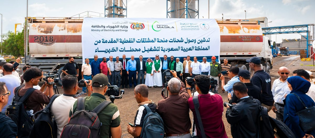 استقبلت عدن والمهرة وشبوة وأبين ولحج تستقبل منحة المشتقات النفطية السعودية؛ لتشغيل محطات توليد الكهرباء.
