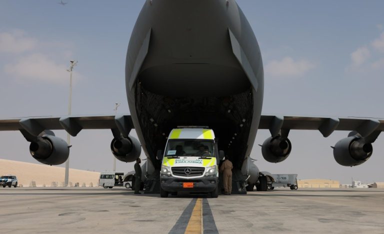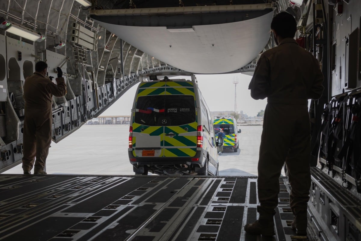 وتنفيذا لمبادرة التعاون، وصلت اليوم إلى مدينة العريش في جمهورية مصر العربية الشقيقة، ثلاث طائرات تابعة للقوات المسلحة القطرية، تحمل 75 طنا من المساعدات الإنسانية، تتضمن 10 سيارات إسعاف ومستلزمات إيواء ومواد غذائية، مقدمة من دولة قطر والجمهورية الفرنسية، تمهيدا لنقلها إلى غزة.