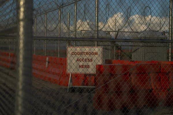 مدخل إلى المجمع القانوني في خليج غوانتانامو حيث ظلت قضية 11 سبتمبر غارقة في جلسات الاستماع السابقة للمحاكمة سنوات (نيويورك تايمز)