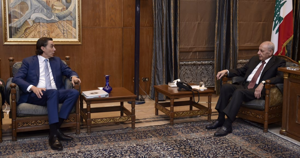 وفي هذا السياق، قالت مصادر سياسية إن الرئيس بري يطالب في لقاءاته مع الموفدين الأوروبيين بالضغط على إسرائيل لأن قرار الحرب بيدها، وأن وقف العدوان على غزة ينسحب هدوءاً على الجبهة الشمالية، وهذا ما تبين عندما تم التوصل إلى هدنة على الجبهة الغزاوية التي استمرت لأيام وانعكست تلقائياً على جنوب لبنان. وأكدت أن الثنائي الشيعي باقٍ على التزامه بتطبيق القرار الدولي 1701، وأن إسرائيل هي من يعطل تطبيقه.