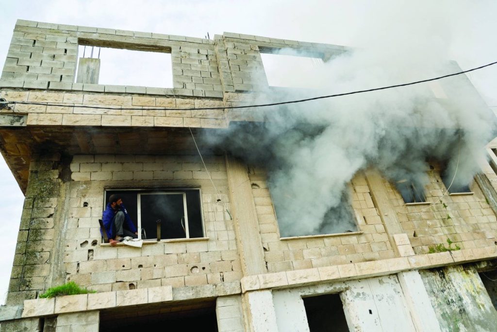 كما عرض التلفزيون صوراً لما وصفه بأنه إطلاق قنابل دخانية من قبل القوات الإسرائيلية خلال اقتحامها الواسع للبلدة.