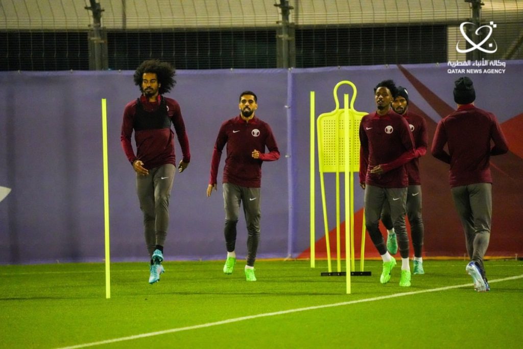 تدريبات المنتخب القطري استعداداً لمواجهة أوزبكستان في ربع نهائي كأس آسيا