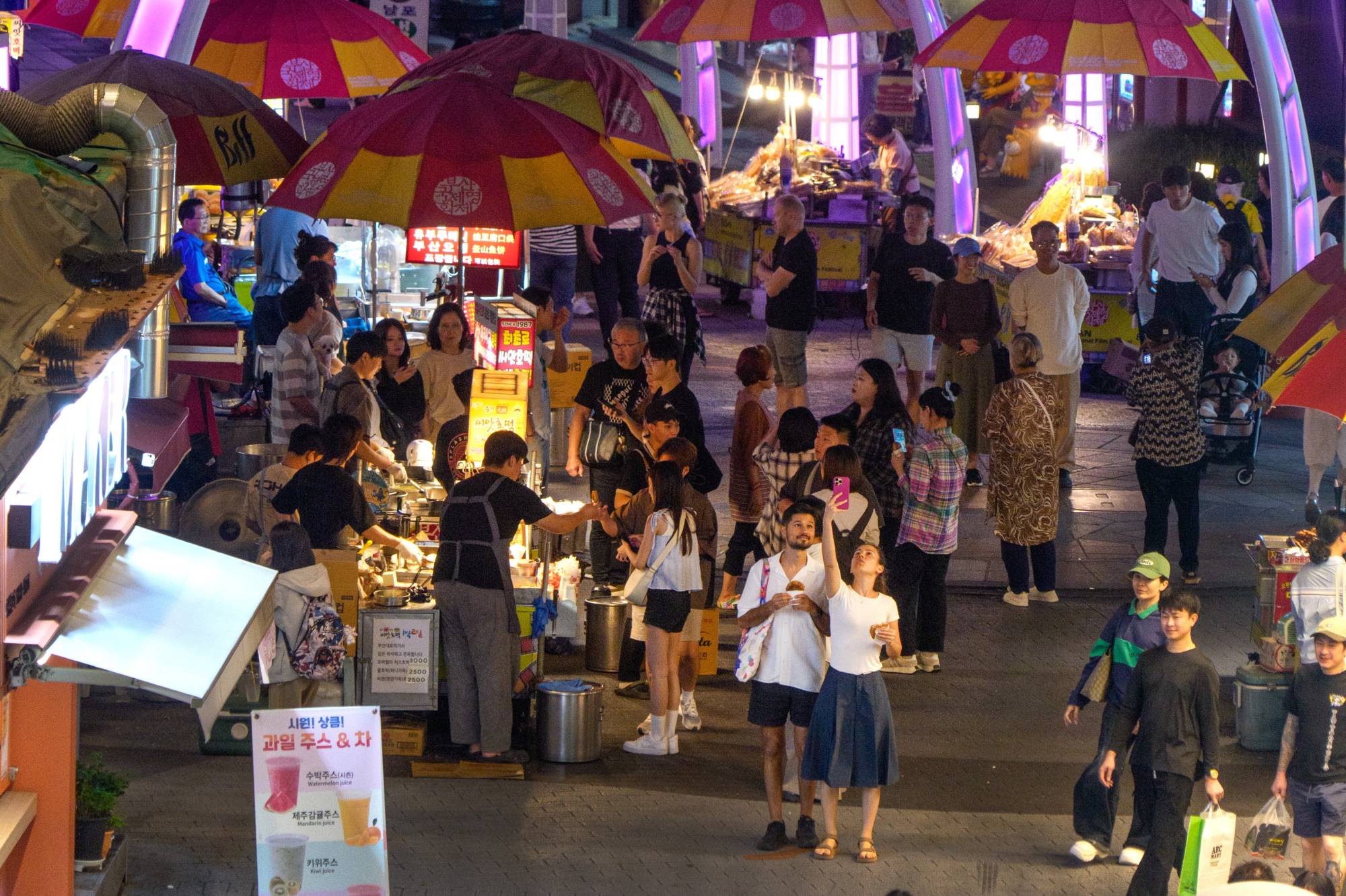 في الوقت الذي يبدو فيه سوق سمك «جاغالتشي»، وهو أحد أكبر الأسواق في البلاد، خياراً واضحاً وبديهياً لمحبي المأكولات البحرية، ويفضل السكان المحليون الـ«بوجانغاماتشاس» (عربات بيع الطعام). وكانت تلك العربات المغطاة في بوسان ذات يوم مرادفاً للمأكولات والمشروبات البحرية، لكنهم أُجبروا على الذهاب إلى أماكن داخلية خلال العقد الماضي، في إطار تطبيق مزيد من الإجراءات التنظيمية وعملية التطوير. يمكن الاستمتاع بحياة الليل في بوسان، كما ينبغي في جزيرة يونغدو، وهو حي يعجّ بالنشاط يقع جنوب محطة بوسان. ويوجد باعة يتجولون في المنطقة الواقعة بين جسر يونغدو وجسر بوسان في شارع بوشا، ويشوون ما تم اصطياده طوال النهار، مع تقديم قطع من اللحم، وهي عبارة عن ضلوع قصيرة مشوية على طريقة لوس أنجلوس، إضافة إلى الأخطبوط الحي والأصداف البحرية. ويبدأ سعر وجبة عشاء لشخصين من 25 ألف وون كوري. يمكنك الجلوس على مقعد بلاستيكي، وصبّ الجعة الكورية أو جرعة صغيرة من مشروب السوجو التقليدي والاستمتاع.