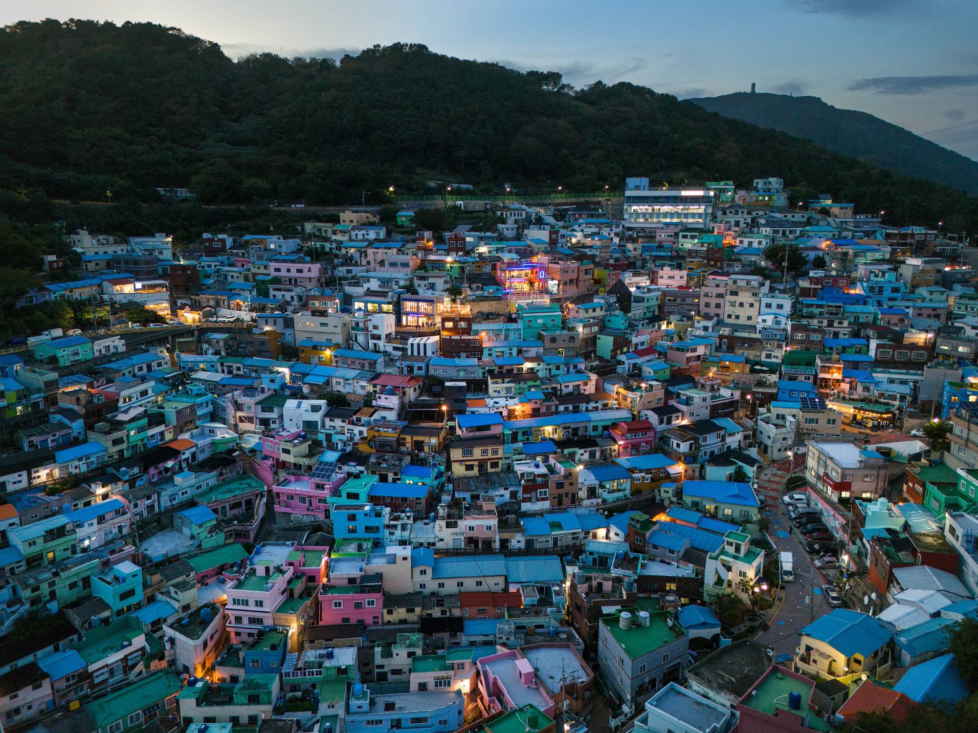 أُنشأت قرية «غامتشيون» الثقافية، التي تضم مئات المنازل الملونة على منحدرات تشونماسان، خلال الحرب الكورية كمستوطنة لطائفة دينية تسمى «تايغوكدو». وزاد عدد السكان بها حتى وصل إلى 30 ألف نسمة. وكانت عائلات بأكملها تتكدس داخل منازل لا تزيد مساحتها على 355 قدم مربعة، وكان المجتمع المحلي كله يعتمد على بضع عشرات من الحمامات. وبدأت موجة مغادرة المنطقة خلال الثمانينات. وحوّل مشروع تنمية تم عام 2009 المنازل المهجورة إلى منطقة جذب سياحي. وتغلق أكثر متاجر بيع الهدايا التذكارية أبوابها قبل السادسة مساء، لكن في ذلك الوقت يصبح الازدحام أقل، والضوء أفضل لالتقاط الصور، حيث توجد بقعة رائعة بجوار تمثال الأمير الصغير لأنطوان دو سانت إكزوبيري. ولا يزال يعيش بالمدينة نحو 1,500 شخص، كثير منهم كبار سن، لذا من الأفضل الالتزام بمسار محدد، والمغادرة قبل الساعة الثامنة والنصف مساءً (الدخول مجاناً).