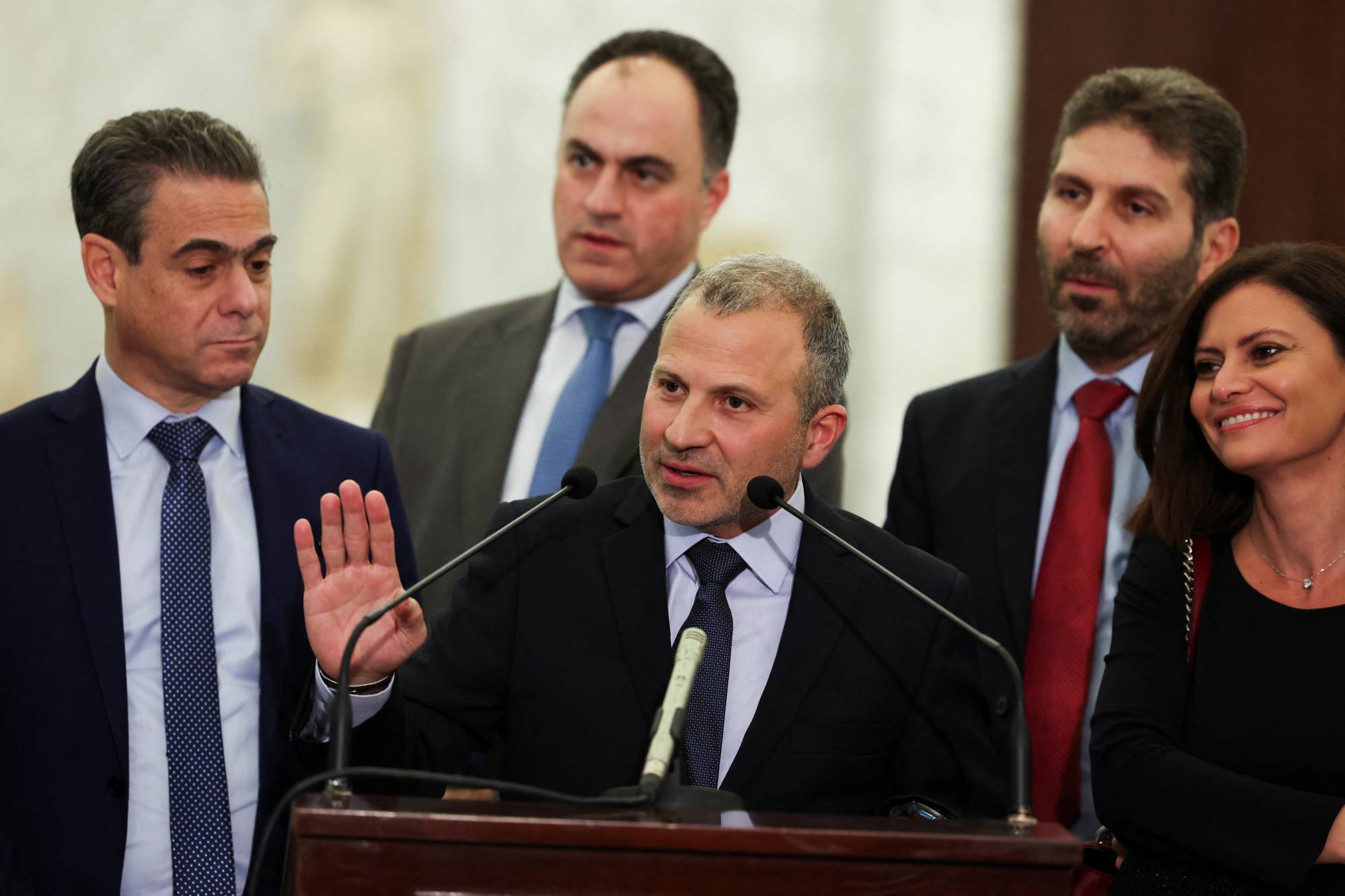رئيس «التيار الوطني الحر» النائب جبران باسيل بعد تسمية نواف سلام لتأليف الحكومة (أرشيفية – رويترز)