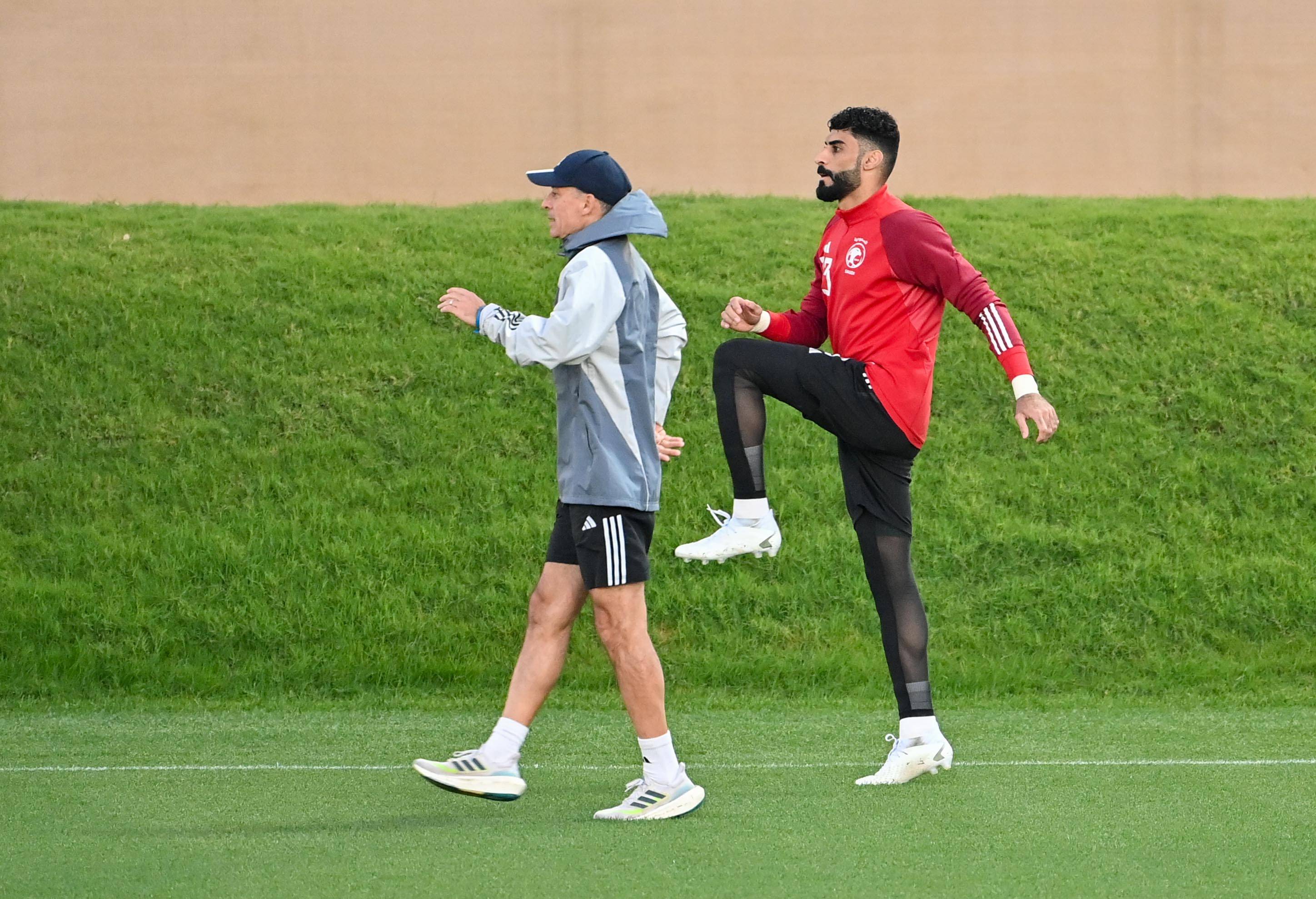 وقبل انطلاق الحصة التدريبية، اجتمع الإيطالي مانشيني باللاعب ناصر الدوسري وتحدثا طويلاً قبل أن يحضر اللاعب الاجتماع الفني برفقة اللاعبين في منتصف الملعب، قبل أن يغادر رفقة أحد أعضاء الجهاز الطبي نحو الصالة الرياضية ويؤدي تدريبات خاصة.