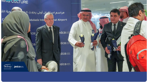 استقبل مطار الملك عبدالعزيز الدولي، اليوم، أولى الرحلات الجوية المباشرة المنتظمة بين المملكة وجمهورية تركمانستان، القادمة من العاصمة التركمانية عشق آباد، وعلى متنها (279) مسافرًا ، بحضور السفير التركماني المفوض لدى المملكة أوراز محمد تشارييف، ومستشار رئيس الهيئة العامة للطيران المدني للحوكمة والمشاريع التنفيذية المهندس سليمان بن أحمد البسام، والرئيس التنفيذي لشركة مطارات جدة المهندس مازن بن محمد جوهر، وعدد من قيادات القطاعات الأمنية والتشغيلية بالمطار.