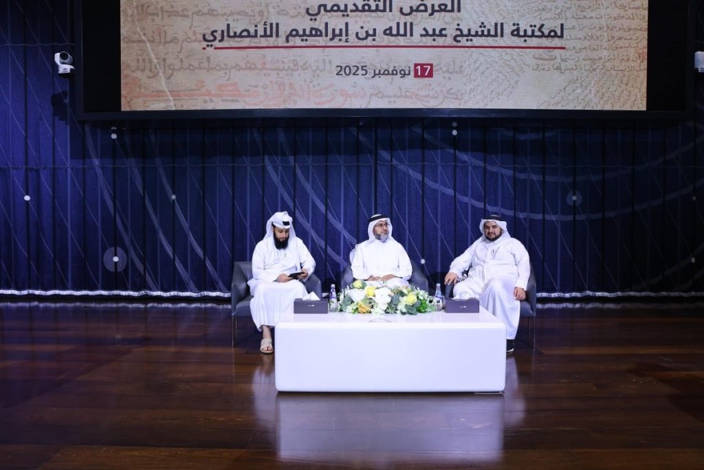 وأضاف أن الاحتفاء بمكتبة الشيخ عبدالله بن إبراهيم الأنصاري إنما هو تعبير عن تقديرنا لرموز نهضة قطر الثقافية التي شكلت وعي أجيالنا، واعتزازنا بمكانة قطر ودورها منارة للمعرفة وجسرا للحوار بين الثقافات، مؤكدا أن تحويل هذه الذاكرة الخاصة إلى معرفة عامة متاحة للباحثين هو جوهر رسالتنا في بناء اقتصاد معرفة مستدام يستمد جذوره وهويته من الحضارة العربية والإسلامية”.