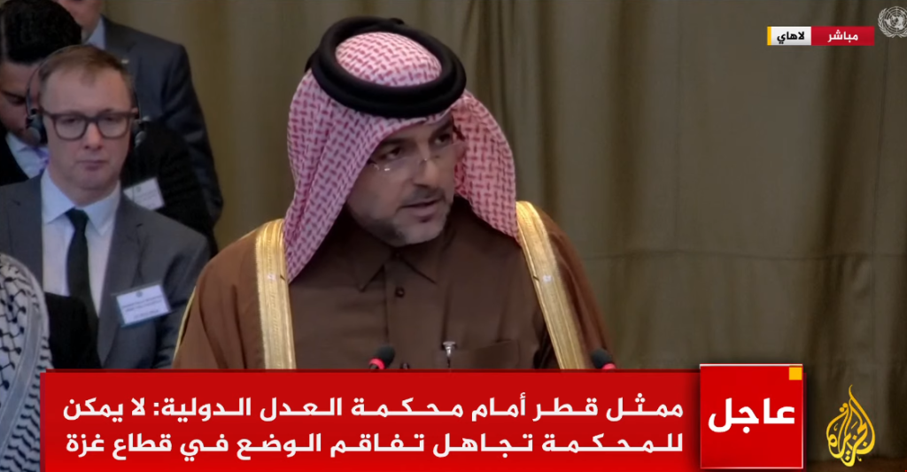 ممثل قطر أمام العدل الدولية: نرفض ازدواجية المعايير وممارسات إسرائيل المخالفة للقانون ليست صدفة