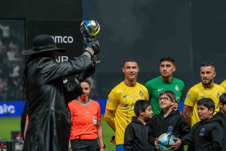 فيما قالت الديلي ميل : أصيب كريستيانو رونالدو والجماهير بالذهول مع ظهور ايقونة المصارعة اندرتيكر بشكل مفاجئ لرفع كأس موسم الرياض.