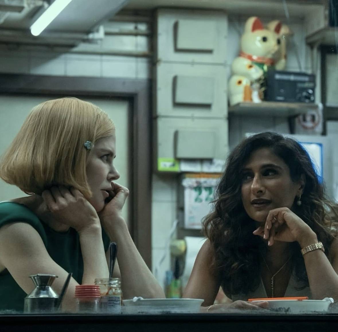عندما يتعطّل المصعد بهيلاري ووالدتها وإحدى قاطنات المبنى، تتحوّل اللحظة إلى طوفان حقائق وعتب حول ماضي الأمّ وابنتها الأليم. وفي مشهدٍ آخر، تُلقي مارغريت بثقل تراجيديا طفلها على زوجها، محمّلةً إياه مسؤولية خسارة عملها والانتقال إلى هونغ كونغ الذي كلّفهما خسارة الولد. يعاين المسلسل العلاقات الإنسانية بما فيها من هشاشة وقسوة، ويفرد مساحةً واسعة لأصوات النساء كي ترتفع وتعبّر عن كل ما يؤلمها بعيداً عن الأوهام.