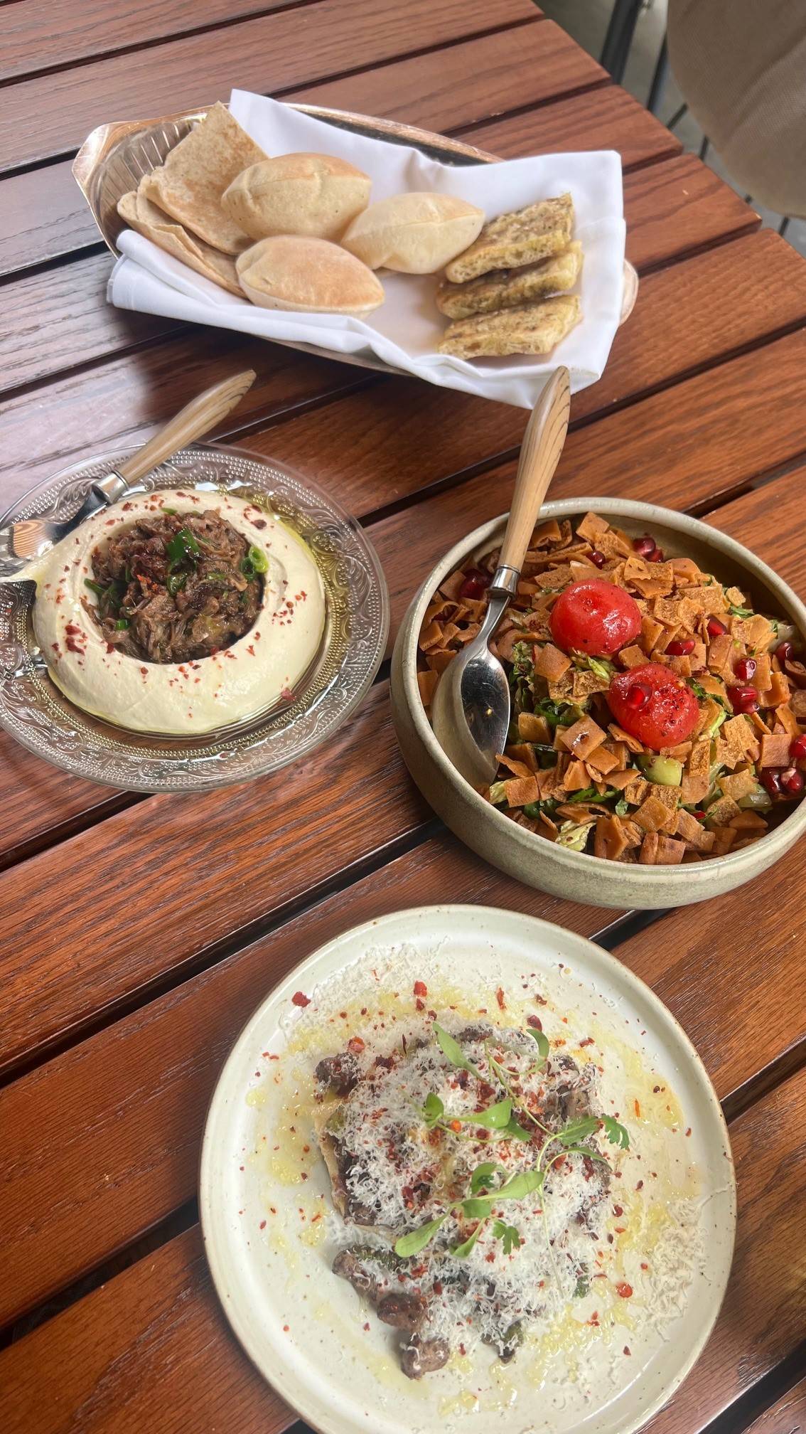 وجربنا أيضاً الكبة بالفطر مع الصنوبر والبهارات، وجبن الحلوم مع العسل، ومن الأطباق الأولية اللذيذة أيضاً الفتوش والمشاوي، وطبق المغربية.