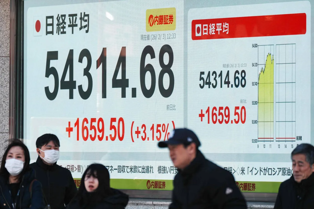 ارتفع مؤشر «نيكي» الياباني للأسهم يوم الجمعة، متعافياً من خسائره المبكرة ليواصل مكاسبه الأسبوعية، حيث تابع المستثمرون نتائج أرباح الشركات الكبرى الفصلية مع التزامهم الحذر قبيل الانتخابات الحاسمة يوم الأحد. وصعد مؤشر «نيكي» القياسي بنسبة 0.8 في المائة ليغلق عند 54.253.68 نقطة، محققاً مكاسب أسبوعية بلغت 1.7 في المائة. كما ارتفع مؤشر «توبكس» الأوسع نطاقاً بنسبة 1.3 في المائة ليصل إلى 3.699 نقطة. ويشهد رابع أكبر اقتصاد في العالم ذروة موسم إعلان الأرباح، وتترقب الأسواق بشغفٍ بالغٍ قبل الانتخابات المقررة يوم الأحد، حيث تشير استطلاعات الرأي إلى فوزٍ حاسمٍ للائتلاف الحاكم برئاسة رئيسة الوزراء ساناي تاكايتشي، التي تُعتبر من دعاة السياسة المالية المعتدلة.